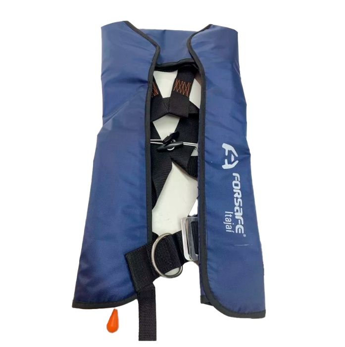 Certificado: ZH21PTB00081; Certificadora Internacional: CCS; Ativação automática (5 segundos após cair na água) ou manual (puxando cordel); Dispositivo de inflação, CO2 cilindro ou tubo de inflação oral.